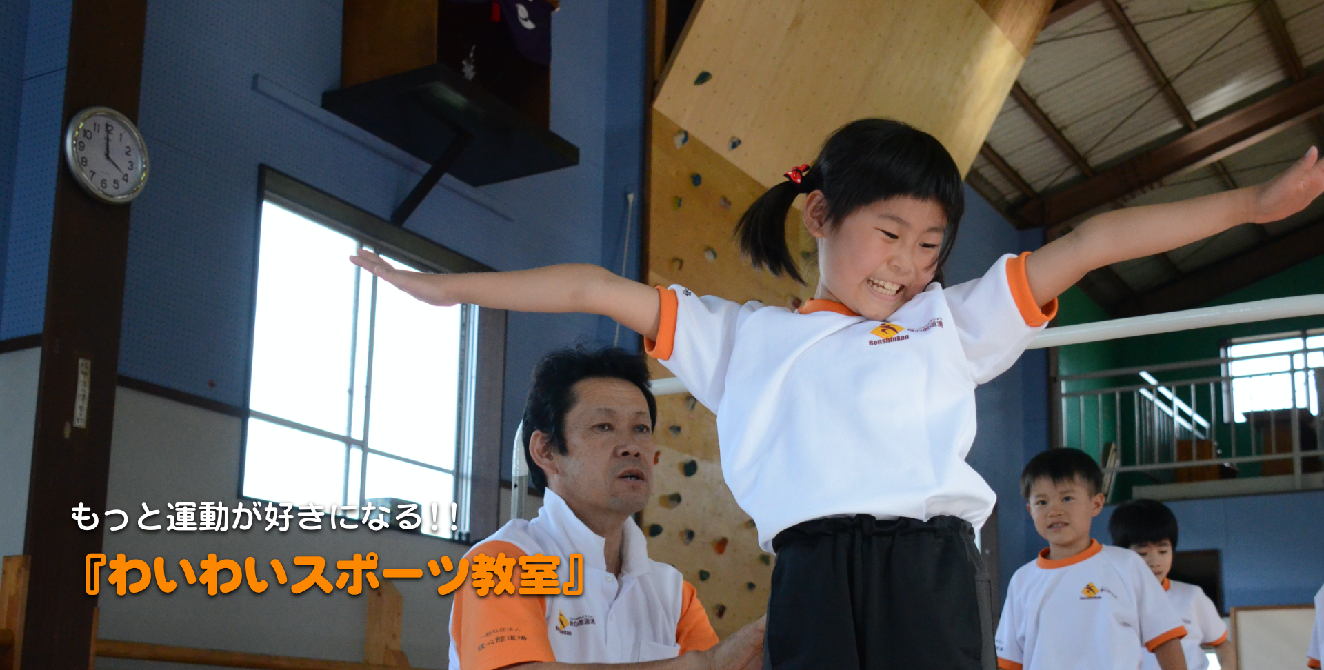 脳や神経系が急激に発達する「ゴールデンエイジ」と呼ばれる時期に獲得した能力を脳は忘れません。わいわいスポーツ教室ではこの「動作の基本や技術を学び吸収力の高い絶好の機会」に子どもたちと丁寧に向き合い、一人ひとりの成長に合わせたスピードでトレーニング内容を分け、細やかに指導しています。錬心館道場では、一般の体操教室とは異なるバリエーション豊富なトレーニングを取り入れることで走ったり、跳んだり、投げたりという動きの基本になる能力を高め、さらにそれらを協調してすばやく巧みな動作を行う能力を磨きます。